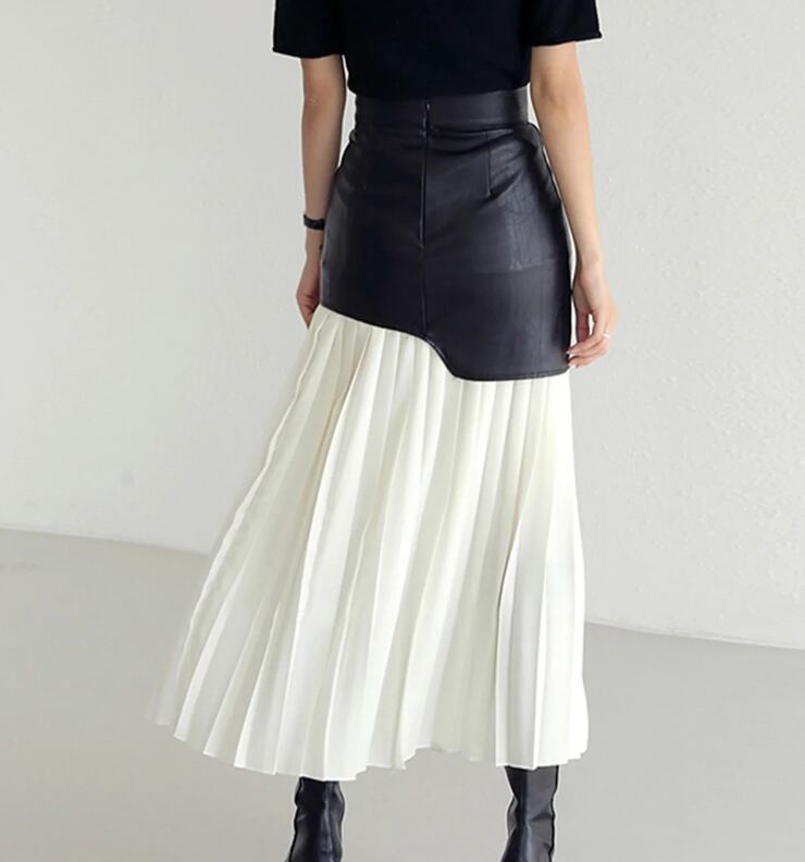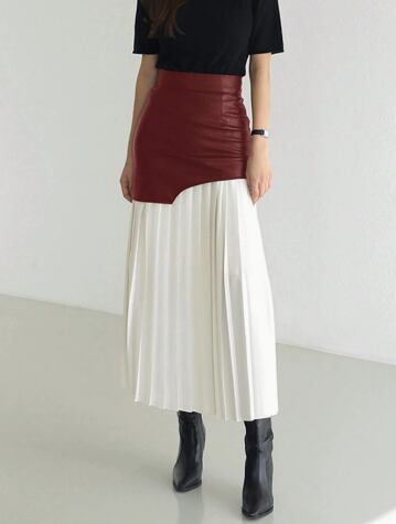 レディース スカート ミモレ Aライン プリーツ 切り替えデザイン 異素材ミックス きれいめ シンプル カジュアル 上品 おしゃれ かっこいい こなれ感 ラフ 個性的 クール モード系 モダン 主役級 存在感 都会的 ベーシック ワイルド 無地 秋 デート お出かけ 女子会 休日 カフェ 韓国 オルチャン コーデ 美脚 脚長 モテ トレンド 流行 インスタ映え 定番 スタイルアップ S M L XL 2XL サイズ豊富 ホワイト ブラック レッド ベーシックカラー 大人カラー カラバリ