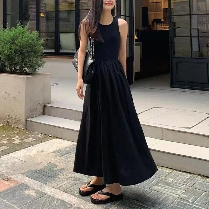 レディース ワンピース 膝下 ミモレ ロング 袖なし ノースリーブ クルーネック 襟なし ノーカラー セミフレア 細身 Aライン 切り替え フェミニン 切り替えデザイン 大人可愛い きれいめ シンプル カジュアル 上品 おしゃれ こなれ感 クール 抜け感 都会的 ベーシック 無地 春 夏 ママ 学生 学校 通学 デート お出かけ イベント リゾート 旅行 女子会 休日 バカンス ショッピング コンパ カフェ 体型カバー 脚長 普段使い 着回し 定番 S M L XL 2XL 大きいサイズ 黒 ブラック