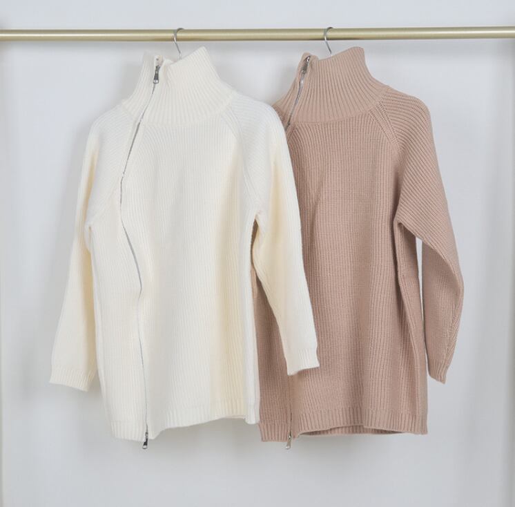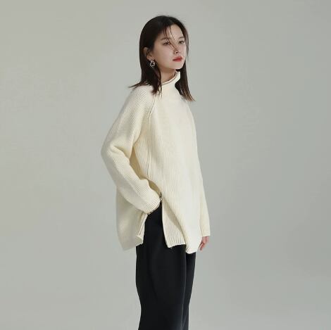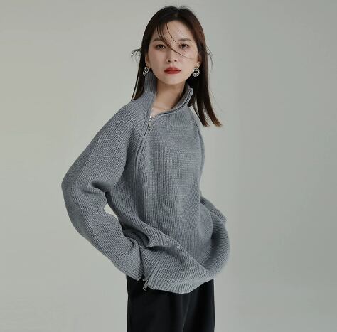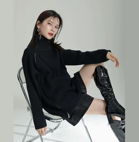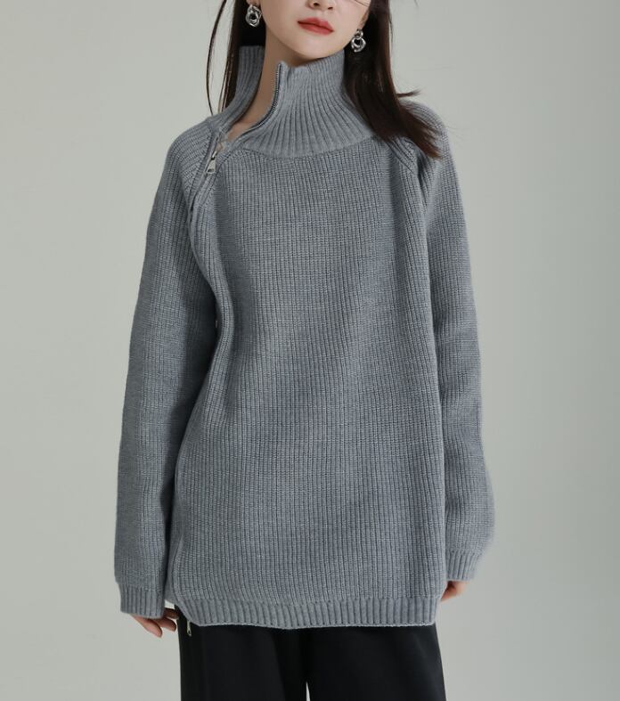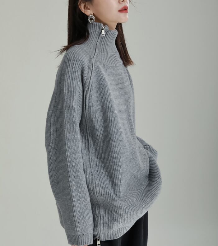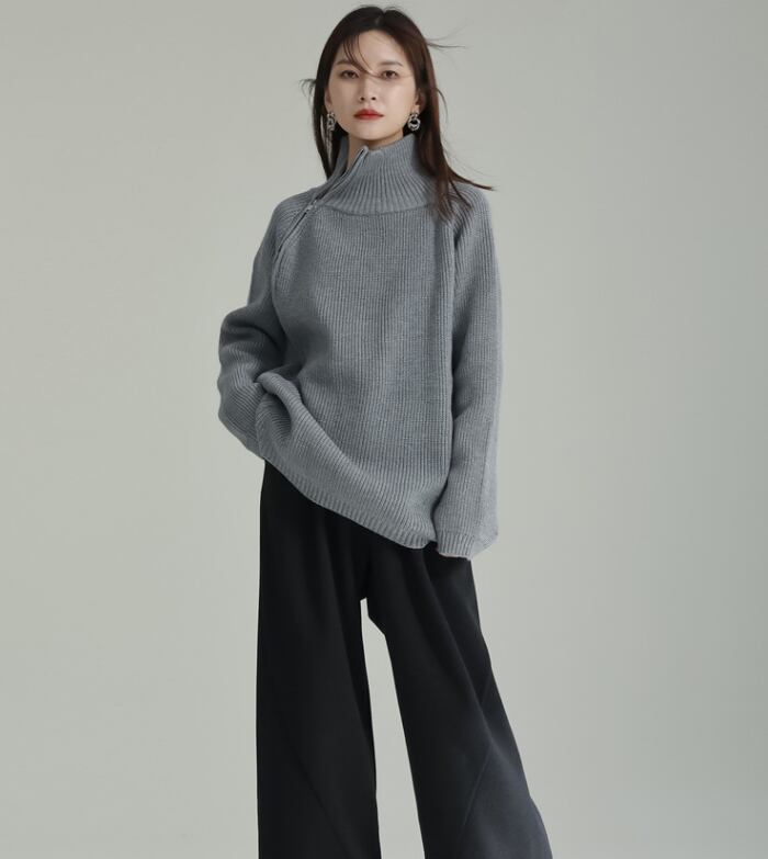 レディース トップス ニット セーター 丈長 長袖 ハイネック ワイド ファスナー ニット きれいめ シンプル カジュアル 上品 おしゃれ こなれ感 ラフ モダン 主役級 存在感 都会的 ベーシック ナチュラル 無地 秋 冬 デート お出かけ 女子会 休日 ショッピング カフェ 韓国 オルチャン コーデ 普段使い 着回し モテ 清楚 トレンド 流行 インスタ映え 定番 スタイルアップ ゆったり フリーサイズ ワンサイズ ブラック グレー カーキ アプリコット ベーシックカラー 大人カラー カラバリ