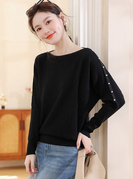レディース トップス ニット セーター プルオーバー ショート丈 長袖 ボートネック 襟なし ワイド フェミニン ビジュー 大人可愛い きれいめ シンプル カジュアル 上品 おしゃれ こなれ感 ラフ モダン 主役級 存在感 都会的 ベーシック ナチュラル 無地 秋 冬 デート お出かけ 女子会 ショッピング カフェ 普段使い 着回し モテ 清楚 トレンド 流行 インスタ映え 定番 スタイルアップ M L XL 2XL 3XL サイズ豊富 ブラック ブラウン ベージュ ベーシックカラー 大人カラー カラバリ
