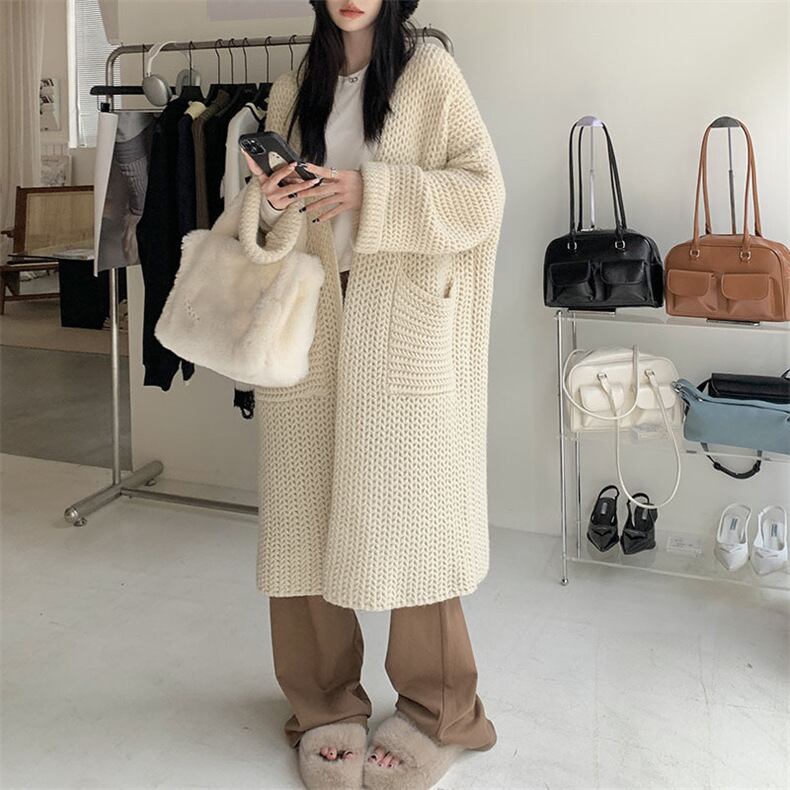 レディース ニット カーディガン ニットコート ロング 長袖 レギュラースリーブ ノーカラー ストレート 前開き 編み込み 伸縮性 厚手 アクリル かわいい シンプル カジュアル おしゃれ 個性的 存在感 無地 秋 冬 OL 通勤 デート お出かけ アウトドア キャンプ イベント リゾート 旅行 公園 女子会 休日 バカンス 普段使い ワンサイズ ダークグレー オフホワイト ピンク オリーブ