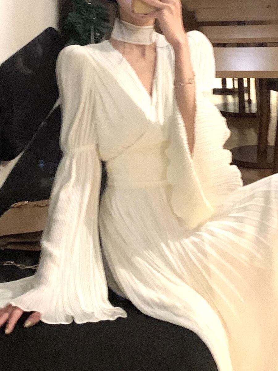 ワンピース ロングワンピース 長袖 Vネック ベルスリーブ ハイウエスト フレアスカート ロング丈 可愛い かわいい 大人可愛い きれいめ シンプル 上品 おしゃれ レトロ かっこいい カジュアル こなれ感 個性的 主役級 存在感 抜け感 春 夏 ナチュラル ベーシック エレガント フェミニン 無地 女性用 レディース ママ デート お出かけ お泊まり 女子会 カフェ ショッピング パーティー 二次会 ディナー コンパ 普段使い デイリー イベント 着回し 重ね着 脚長 S M L XL トレンド モテ