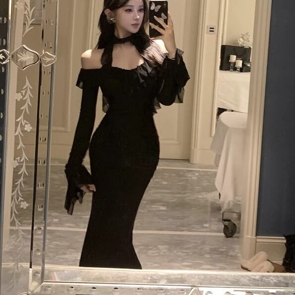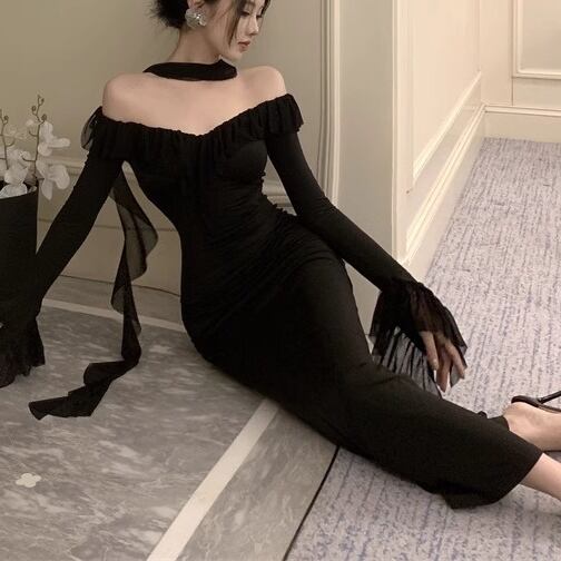 ワンピース ロングワンピース 長袖 オフショルダー ベルスリーブ ハイウエスト タイト ロング丈 可愛い かわいい 大人可愛い きれいめ シンプル 上品 おしゃれ レトロ かっこいい カジュアル こなれ感 個性的 主役級 存在感 抜け感 オールシーズン ナチュラル ベーシック エレガント セクシー 無地 女性用 レディース ママ デート お出かけ お泊まり 女子会 カフェ ショッピング パーティー 二次会 ディナー コンパ 普段使い デイリー イベント 着回し 重ね着 脚長 S M L XL トレンド