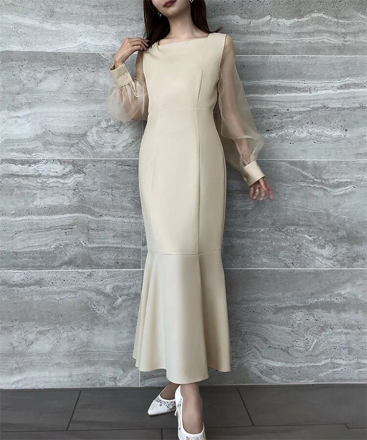 ワンピース ロングワンピース 長袖 ボリューム袖 スクエアネック マーメードスカート 可愛い かわいい 大人可愛い きれいめ シンプル 上品 おしゃれ レトロ かっこいい カジュアル こなれ感 個性的 主役級 存在感 抜け感 春 夏 ナチュラル ベーシック キュート フェミニン フォーマル エレガント 無地 女性用 レディース デート お出かけ お泊まり 女子会 旅行 休日 カフェ ショッピング コンパ パーティー 二次会 ディナー 普段使い デイリー イベント 着回し 重ね着 脚長 M L XL