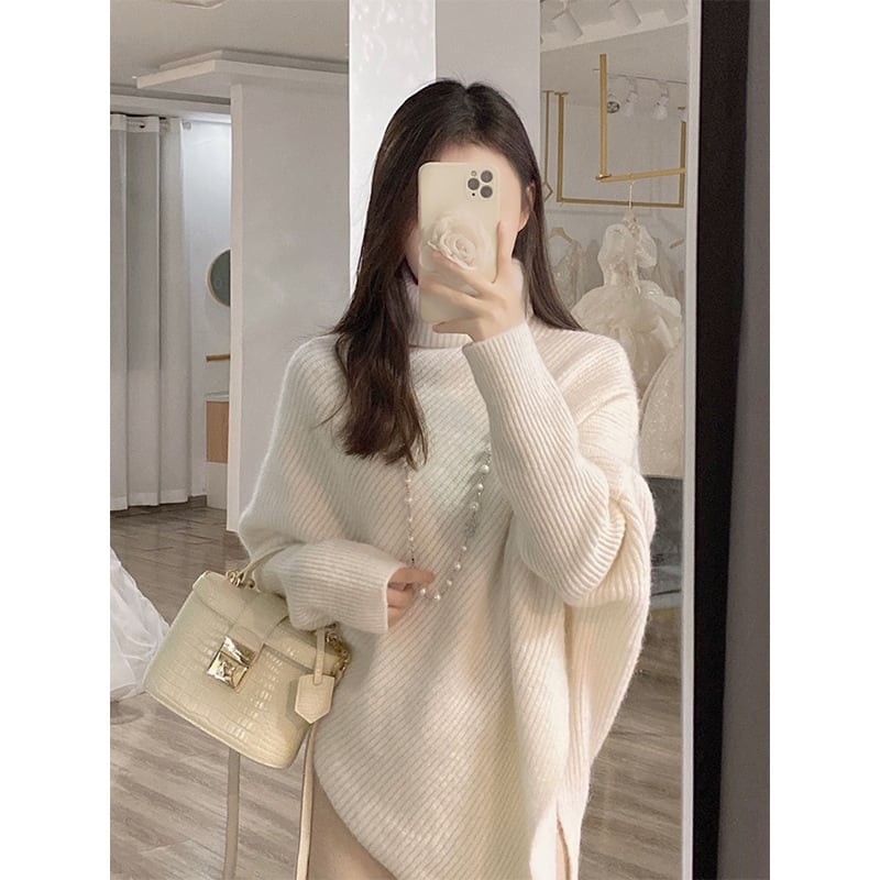 レディース トップス ニット 丈長 長袖 ドルマンスリーブ ドロップショルダー ハイネック ワイド アシンメトリー ふわふわ かわいい 大人可愛い シンプル カジュアル おしゃれ こなれ感 ガーリー キュート ベーシック ナチュラル 無地 秋 冬 ママ 通勤 学生 学校 通学 デート お出かけ 旅行 レストラン 女子会 休日 ホテル ショッピング カフェ 体型カバー 普段使い 着回し ゆったり ゆる フリーサイズ ブラック カーキ レッド 秋カラー カラバリ