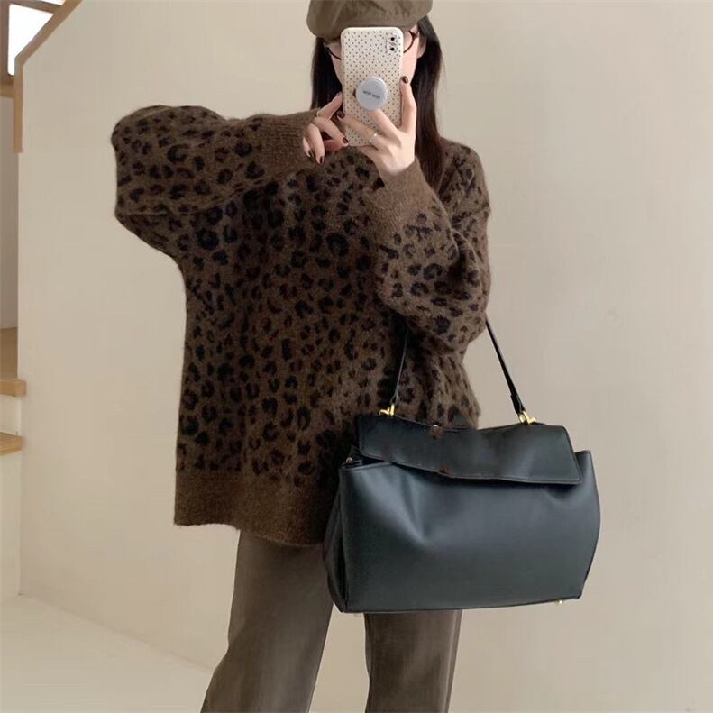 レディース トップス ニット セーター 長袖 萌袖 ラウンドネック 襟なし ワイド オーバーサイズ アメカジ 大人可愛い シンプル カジュアル おしゃれ かっこいい こなれ感 ラフ ルーズ クール 存在感 抜け感 ワイルド リラックス ヒョウ柄 レオパード ママ 学生 学校 通学 部活 旅行 公園 女子会 休日 ショッピング ライブ カフェ 重ね着 体型カバー 普段使い 着回し レイヤード トレンド 流行 インスタ映え ゆったり ゆる フリーサイズ 茶色 ブラウン グレー 大人カラー 秋カラー