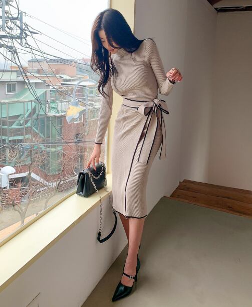洗練された大人の女性にふさわしい、レディースニットワンピース。長袖とハーフネックのデザインがシックで、体に心地よくフィットするタイトシルエットが魅力です。コットンとポリエステルを使用し、柔らかな肌ざわりと優れた伸縮性を実現。装飾のないシンプルなスタイルは、秋冬のオフィスやデート、休日のお出かけでも、上品さを失わずに存在感を放ちます。