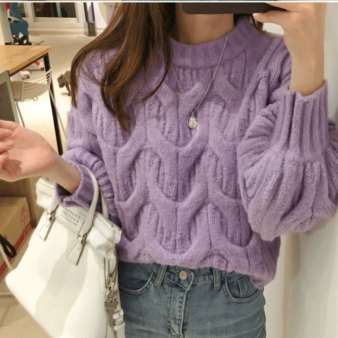 トップス セーター 長袖 ボリューム袖 クルーネック 丸首 プルオーバー ミディアム丈 可愛い かわいい 大人可愛い きれいめ シンプル 上品 おしゃれ レトロ かっこいい カジュアル こなれ感 個性的 主役級 存在感 抜け感 秋 冬 ベーシック ナチュラル キュート 無地 女性用 レディース ママ マタニティ OL 通勤 オフィス 学生 通学 デート お出かけ お泊まり 女子会 旅行 アウトドア カフェ ショッピング コンパ 普段使い デイリー イベント 着回し ワンサイズ トレンド モテ 暖かい