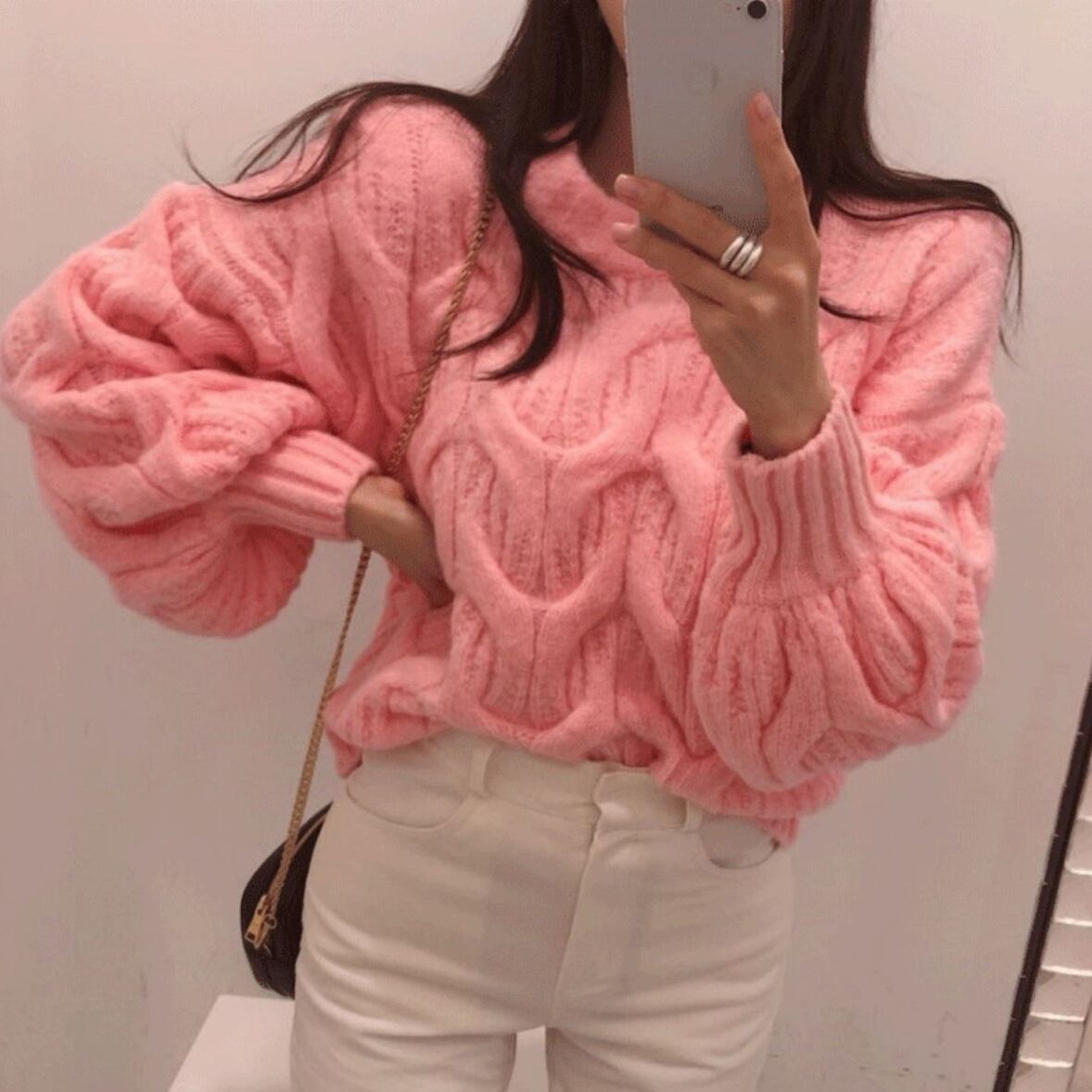今季のトレンドを押さえた「ボリューム袖 セーター」は、一枚で主役級の存在感を放ちます。
