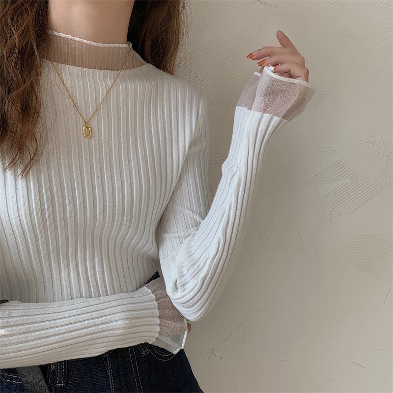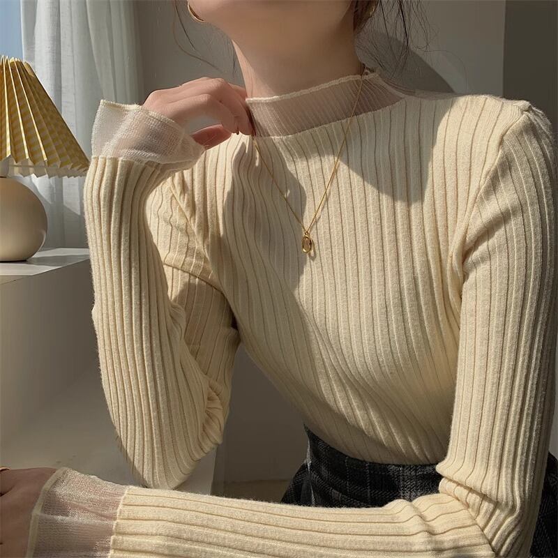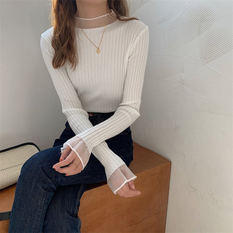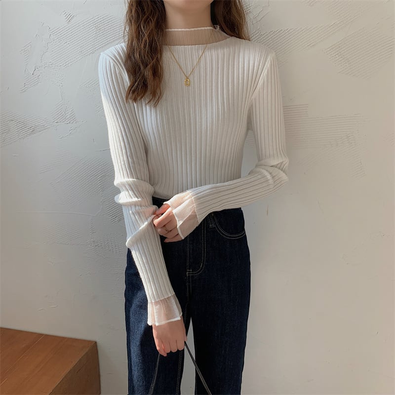 レディース トップス ニット 長袖 フレアスリーブ フリル袖 ハイネック タイト スリム 細身 フェミニン リブニット 透け感 シースルー 伸縮性 切り替えデザイン シアー かわいい 大人可愛い きれいめ シンプル おしゃれ こなれ感 ガーリー キュート ベーシック ナチュラル 無地 秋 冬 ママ 通勤 学生 学校 通学 デート お出かけ 旅行 レストラン 女子会 休日 ホテル ショッピング カフェ 普段使い 着回し モテ フリーサイズ ホワイト ブラック ベージュ ブルー パープル カラバリ