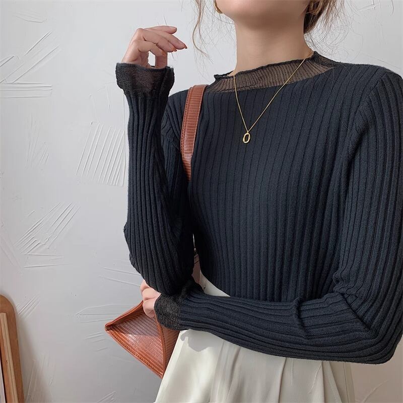 繊細な透け感とフリル袖が女性らしさを引き立てる、ハイネックのリブニットトップス。タイトなシルエットが美しいラインを演出し、上品でフェミニンな印象を与えます。フレアスリーブと透け素材の切り替えが上品で、シンプルながらもこなれた雰囲気をプラス。