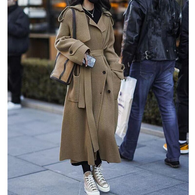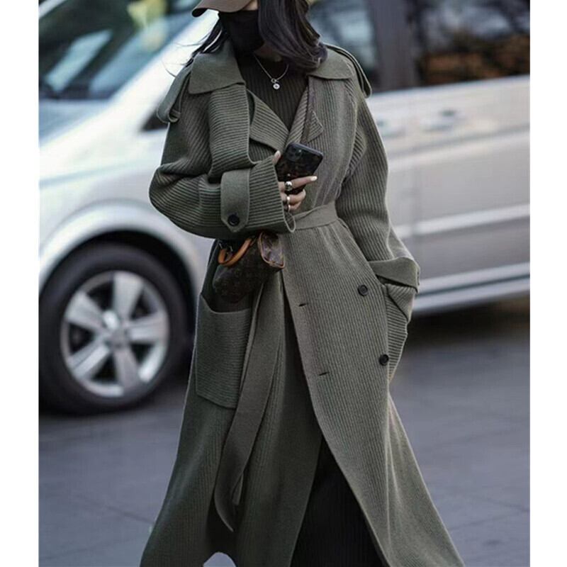 レディース カーディガン コート アウター ロングコート ロング 長袖 ベルスリーブ 襟付き ラペル ストレート オーバーサイズ シングルブレスト ウエストリボン ポケット 前開き リブニット 厚手 ニット ナイロン ポリエステル 大人可愛い おしゃれ レトロ エレガント 存在感 スタイリッシュ 無地 秋 冬 通勤 デート お出かけ アウトドア キャンプ イベント リゾート 旅行 公園 女子会 休日 バカンス ガーデン ショッピング コンサート ライブ カフェ フェス 暖かい 防寒 普段使い トレンド