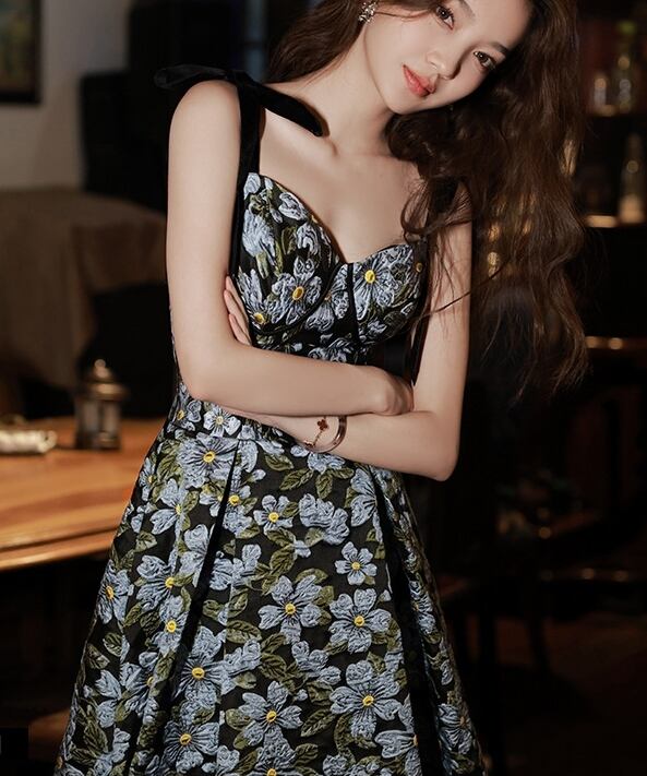 肩リボンが可愛らしさを引き立て、ハイウエストデザインがスタイルを美しく見せます。