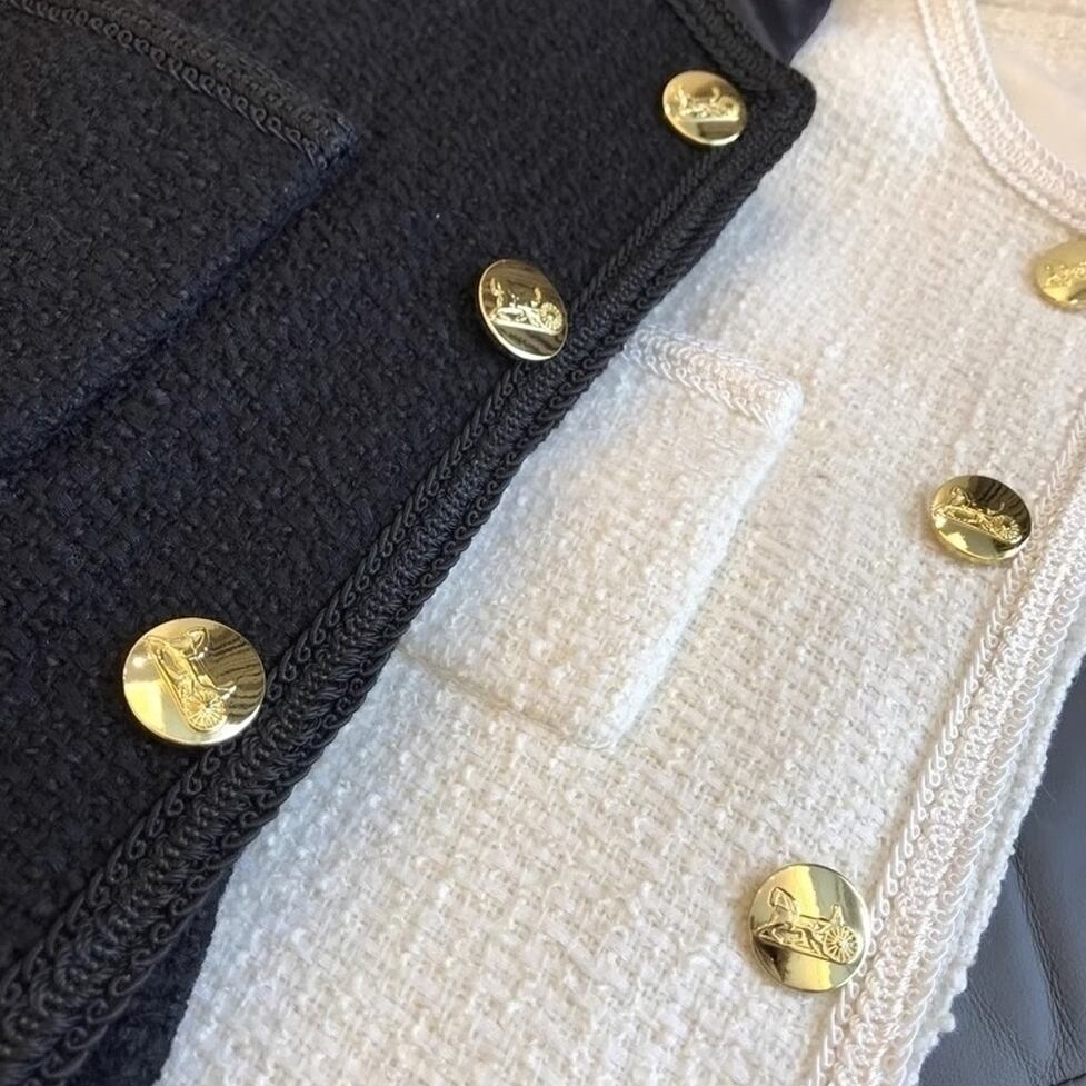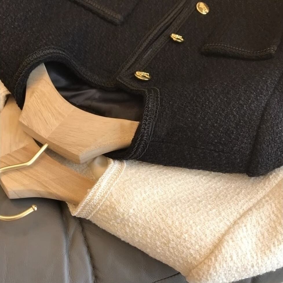 レトロで大人可愛いノーカラーツイードジャケット。何気ない所作を優雅に見せるのでオンオフ問わず活躍しそう。顔まわりに華やぎだけを的確に添えるスマートな洒落感が実現。何度だって新鮮な気持ちで着まわしたい服。