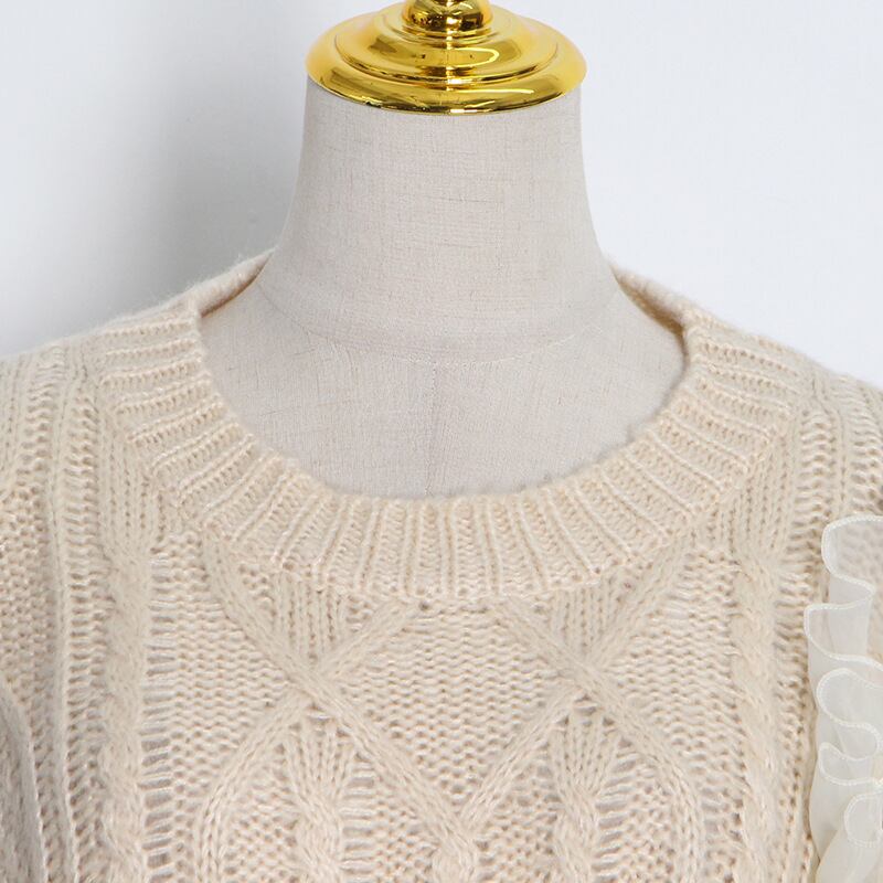 レディース トップス ニット セーター レギュラー丈 長袖 レギュラースリーブ クルーネック フレア ストレート アシンメトリー フェミニン レース リブ ケーブルニット リブニット レースアップ 透け感 薄手 コットン ポリエステル カジュアル 個性的 存在感 無地 春 秋 冬 通勤 デート お出かけ イベント リゾート 旅行 女子会 休日 バカンス ガーデン ショッピング コンサート ライブ 普段使い トレンド インスタ映え M L 黒