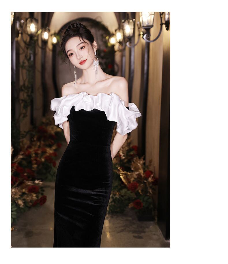 上品なシルエットが魅力の、オフショルダーマーメイドロングドレス。