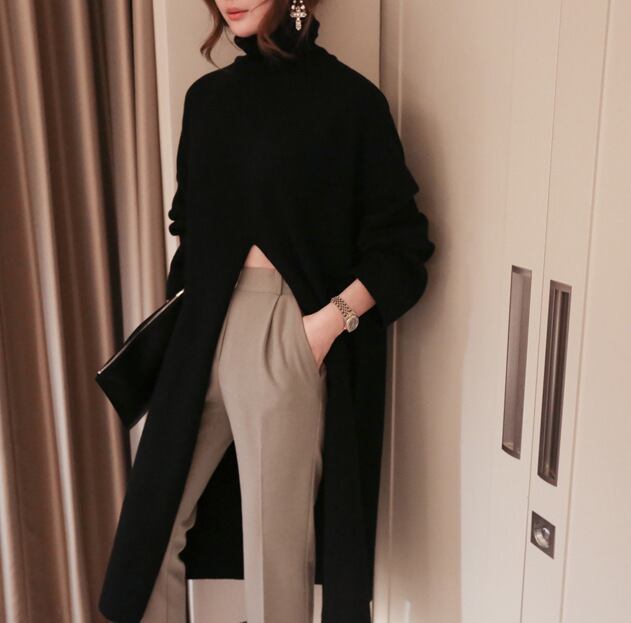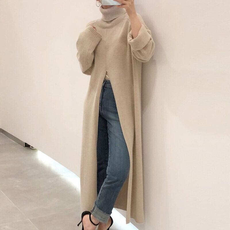 おしゃれでシックなレディースニットセーターが新入荷!ロング丈のデザインは、シンプルながらも存在感を放ち、秋冬のシーズンに欠かせません。ハイネックとタイトなシルエットが、洗練された印象を与え、通勤やデート、お出かけに最適なアイテムです。