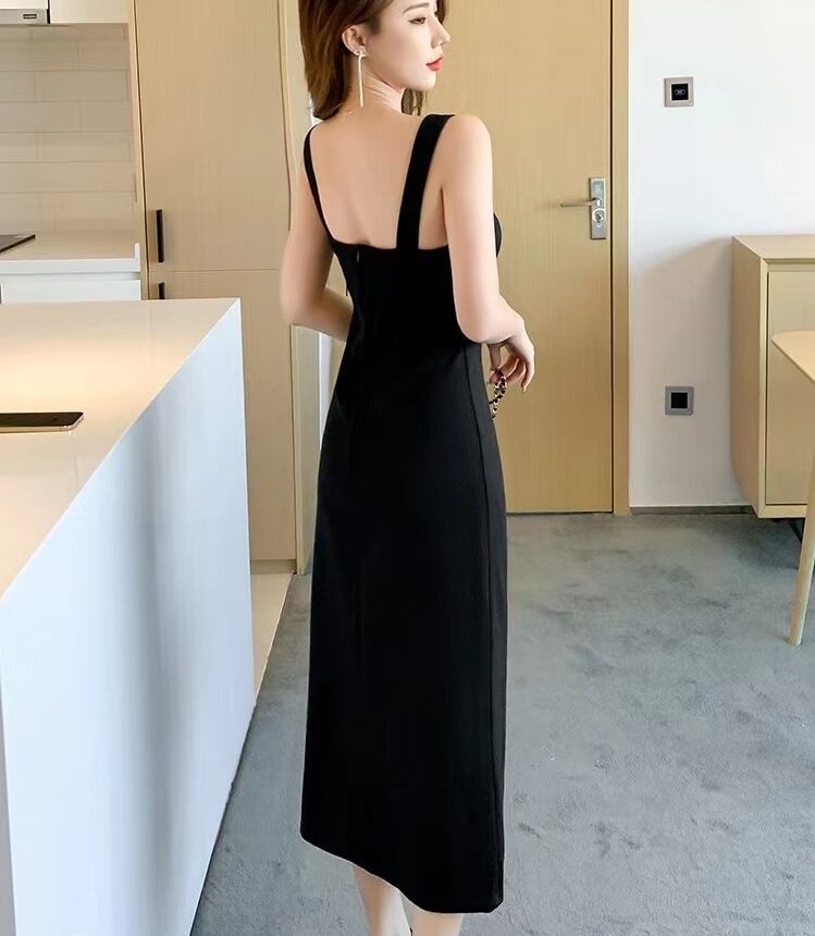 ノースリーブとスクエアネックが、スッキリとしたラインを引き立て、またサイドスリットが入っていることで動きやすさも確保しています。