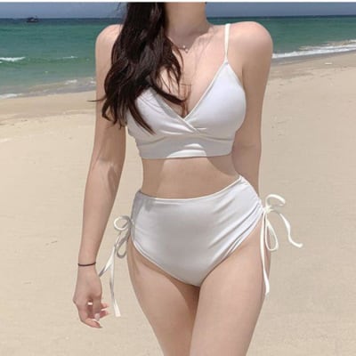 スイムウエア セパレート水着 ビキニ 胸元 谷間 パッド付き バックシャン ハイウエスト サイドリボン 可愛 かわいい 大人可愛い シンプル カジュアル 大人 おしゃれ お洒落 レトロ 大人女子 こなれ感 個性的 キュート フェミニン 無地 主役級 存在感 抜け感 夏 10代 20代 30代 40代 女性用 レディース ママ デート お出かけ 女子会 休日 イベント 旅行 リゾート バカンス 海 プール 温泉 美脚 脚長 M L XL モテ スタイルアップ トレンド スレンダー 映え 高見え 高級感