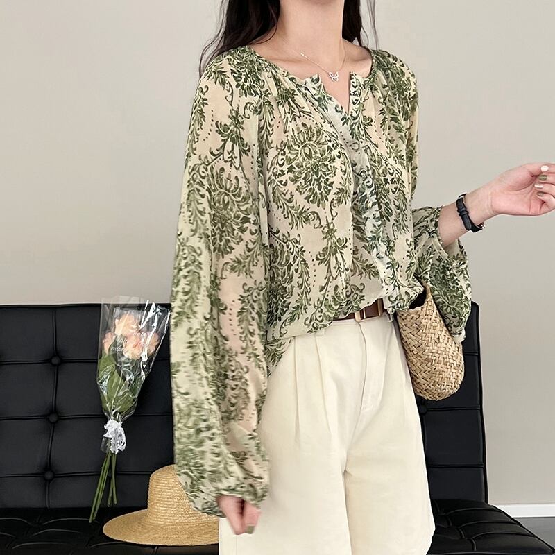 トップス シャツ シフォンシャツ 長袖 ボリューム袖 ラウンドネック ボタン ミディアム丈 可愛い かわいい 大人可愛い きれいめ シンプル 上品 おしゃれ レトロ かっこいい カジュアル こなれ感 個性的 主役級 存在感 抜け感 オールシーズン ベーシック ナチュラル エレガント フォーマル 女性用 レディース ママ OL 通勤 オフィス 学生 通学 デート お出かけ お泊まり 女子会 旅行 会議 MTG カフェ ショッピング コンパ 普段使い デイリー イベント 着回し 重ね着 M L トレンド モテ