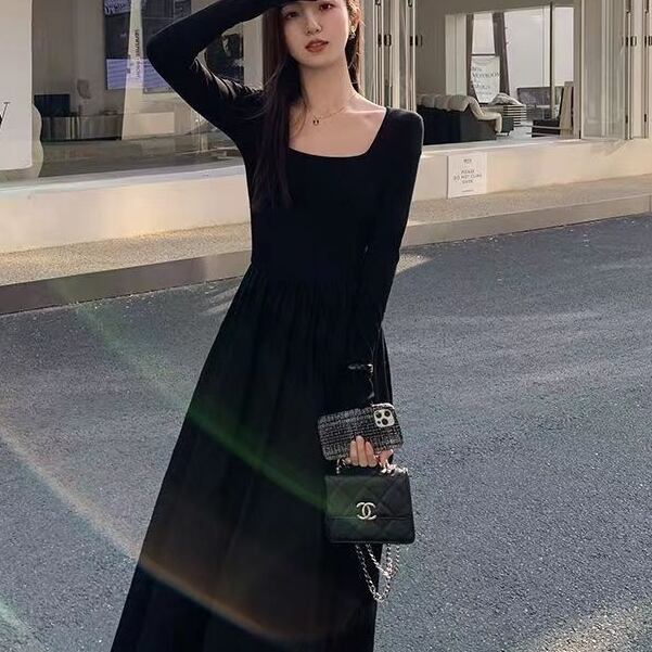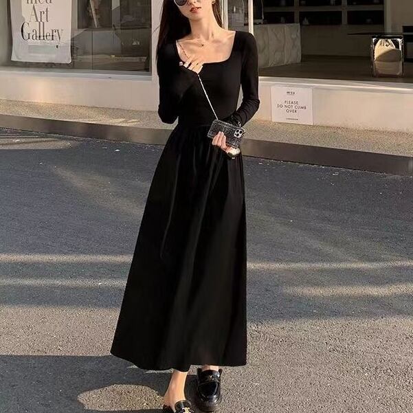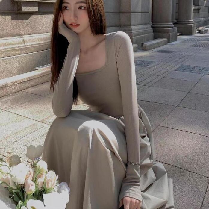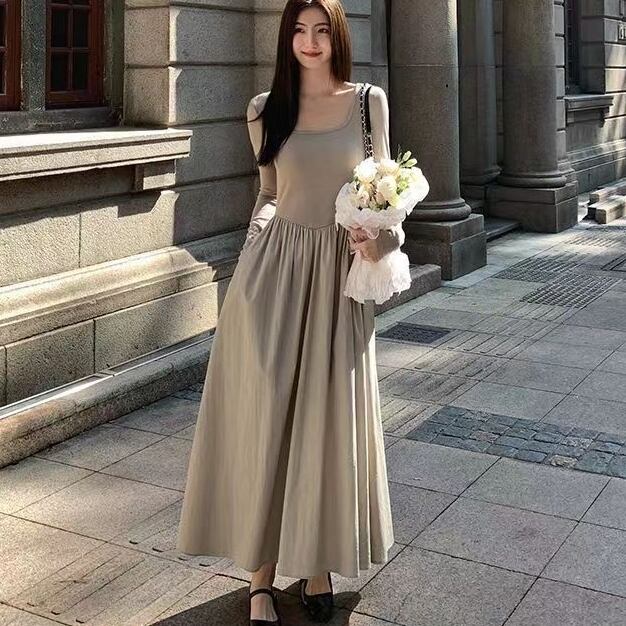 ワンピース ロングワンピース 長袖 スクエアネック ハイウエスト ポケット Aラインスカート 可愛い かわいい 大人可愛い きれいめ シンプル 上品 おしゃれ レトロ かっこいい カジュアル こなれ感 個性的 主役級 存在感 抜け感 ナチュラル ベーシック エレガント 無地 女性用 レディース ママ OL 通勤 オフィス 学生 通学 デート お出かけ お泊まり 女子会 旅行 休日 カフェ ショッピング コンパ ディナー 普段使い デイリー イベント 着回し 重ね着 脚長 M L XL 2XL モテ