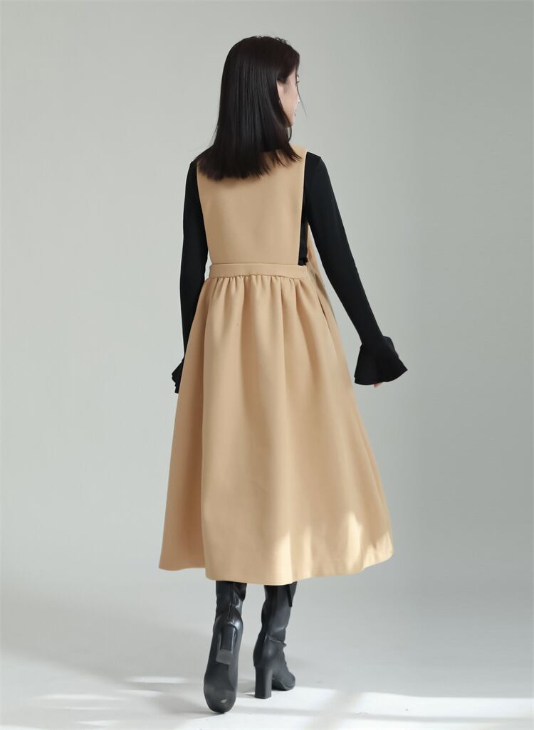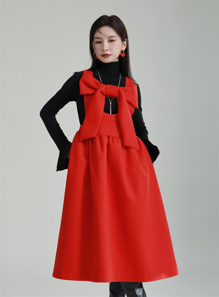 レディース スカート サロペット 膝下 ミモレ スクエアネック フレア Aライン フェミニン リボン かわいい 大人可愛い きれいめ シンプル カジュアル おしゃれ ガーリー 存在感 ラブリー キュート ベーシック ナチュラル 無地 秋 冬 ママ 通勤 学生 学校 通学 デート お出かけ 旅行 レストラン 女子会 休日 ホテル ショッピング カフェ 普段使い 着回し S M L ブラック グレー イエロー レッド ベーシックカラー 大人カラー 秋カラー カラバリ