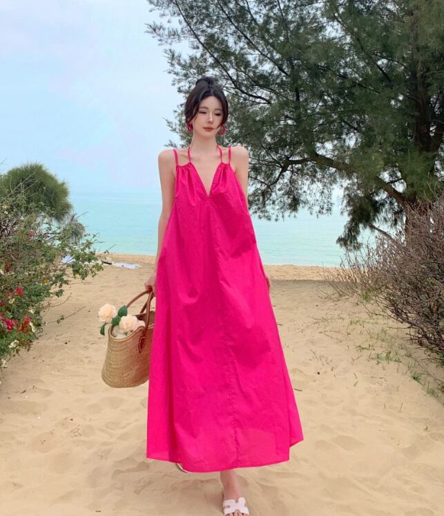 レディース ワンピース マキシ 袖なし キャミソール Vネック 襟なし ワイド 異国風 胸元開き 大人可愛い シンプル カジュアル おしゃれ アジアン こなれ感 ラフ ルーズ 個性的 主役級 存在感 都会的 ベーシック ナチュラル 無地 夏 お出かけ リゾート 海 プール バカンス ショッピング 韓国 オルチャン コーデ 楽ちん モテ トレンド 流行 インスタ映え 定番 スタイルアップ セクシー S M L XL ゆったり ゆる サイズ豊富 ベーシックカラー 大人カラー ローズレッド