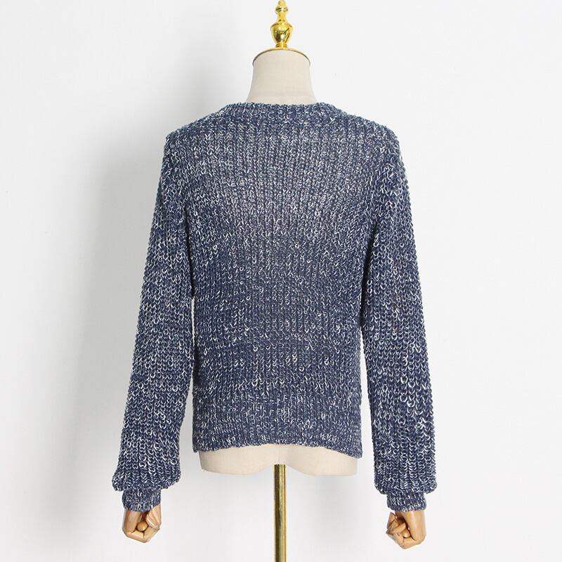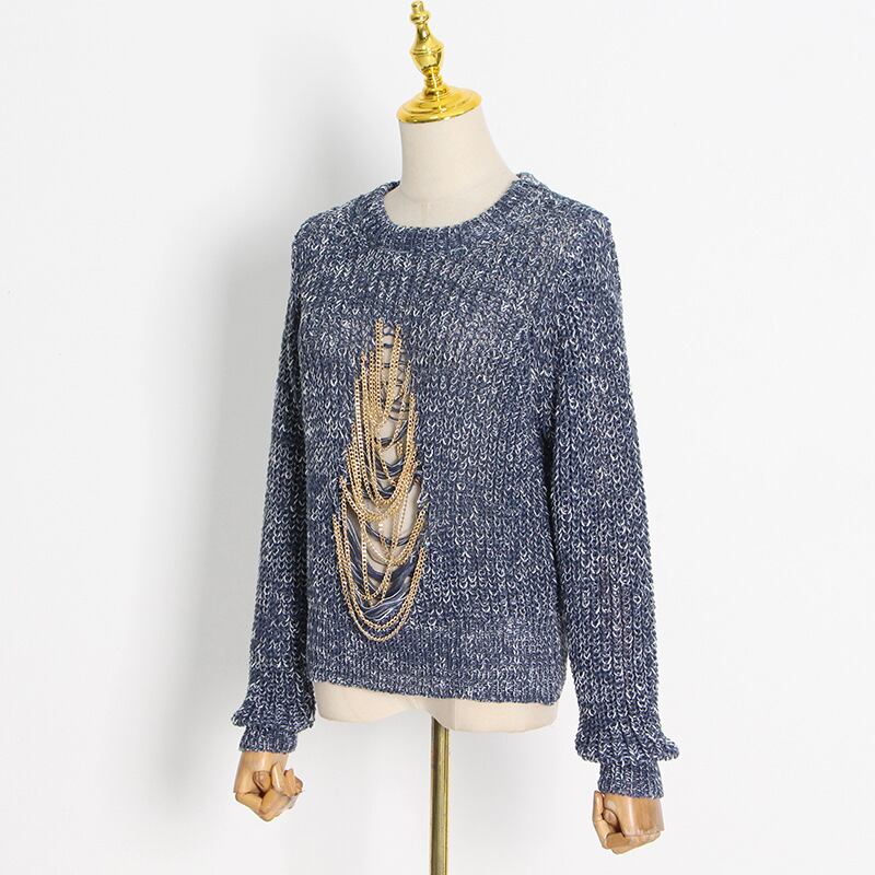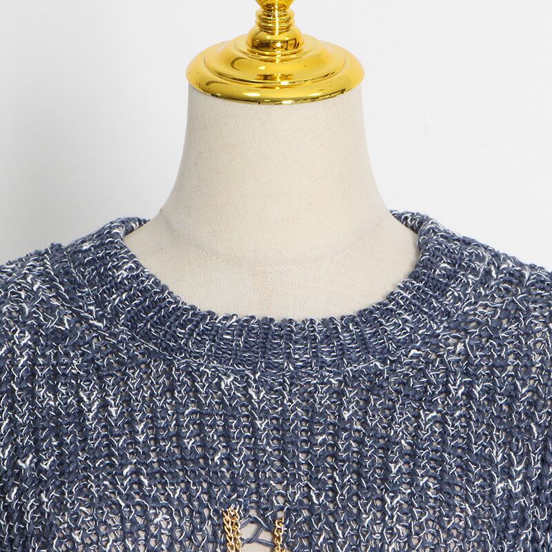レディース トップス ニット セーター 長袖 ラウンドネック タイト 細身 ダメージ かわいい カジュアル おしゃれ かっこいい こなれ感 個性的 クール 存在感 キュート ナチュラル スタイリッシュ 無地 秋 冬 ママ デート お出かけ 旅行 女子会 休日 ショッピング コンサート ライブ カフェ 普段使い 着回し フリーサイズ ブルー ベーシックカラー