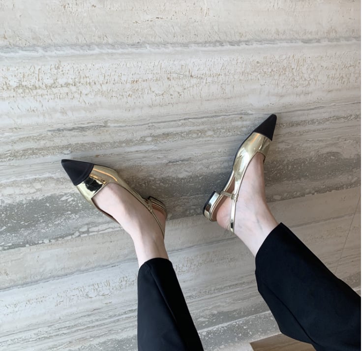 歩きやすいぺたんこ仕様で、デートやお出かけにも快適。