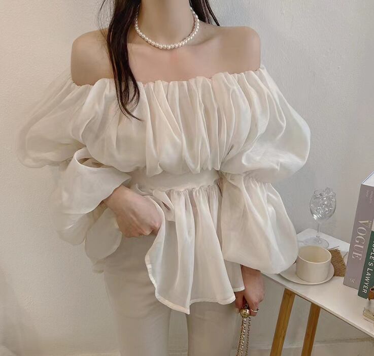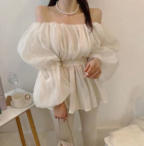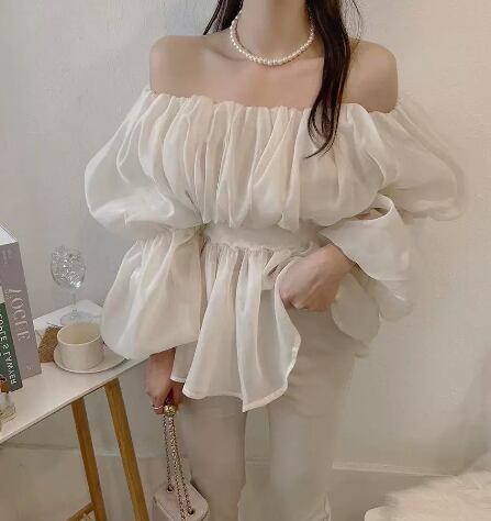 レディース トップス ブラウス プルオーバー 普通丈 長袖 パフスリーブ オフショルダー 襟なし ワイド フェミニン シフォン 大人可愛い きれいめ シンプル 上品 おしゃれ こなれ感 ラフ ガーリー エレガント 主役級 存在感 とろみ感 ラブリー キュート プリンセス 都会的 ベーシック ロマンティック ナチュラル 無地 春 秋 デート お出かけ ショッピング カフェ モテ トレンド 流行 インスタ映え 定番 スタイルアップ セクシー フリーサイズ ワンサイズ ホワイト ベーシックカラー 大人カラー