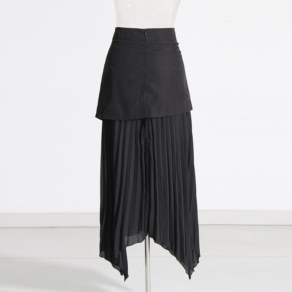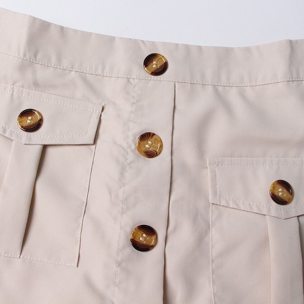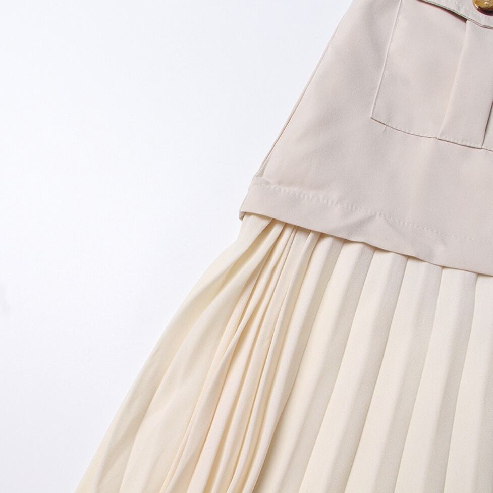 カーゴ風とプリーツの異素材ドッキングスカート。すっきりした見た目に導いてくれる後ろ姿までレディに演出。微糖な甘さと女性らしいやわらかさが宿る女性的でしなやかな曲線をメイク。