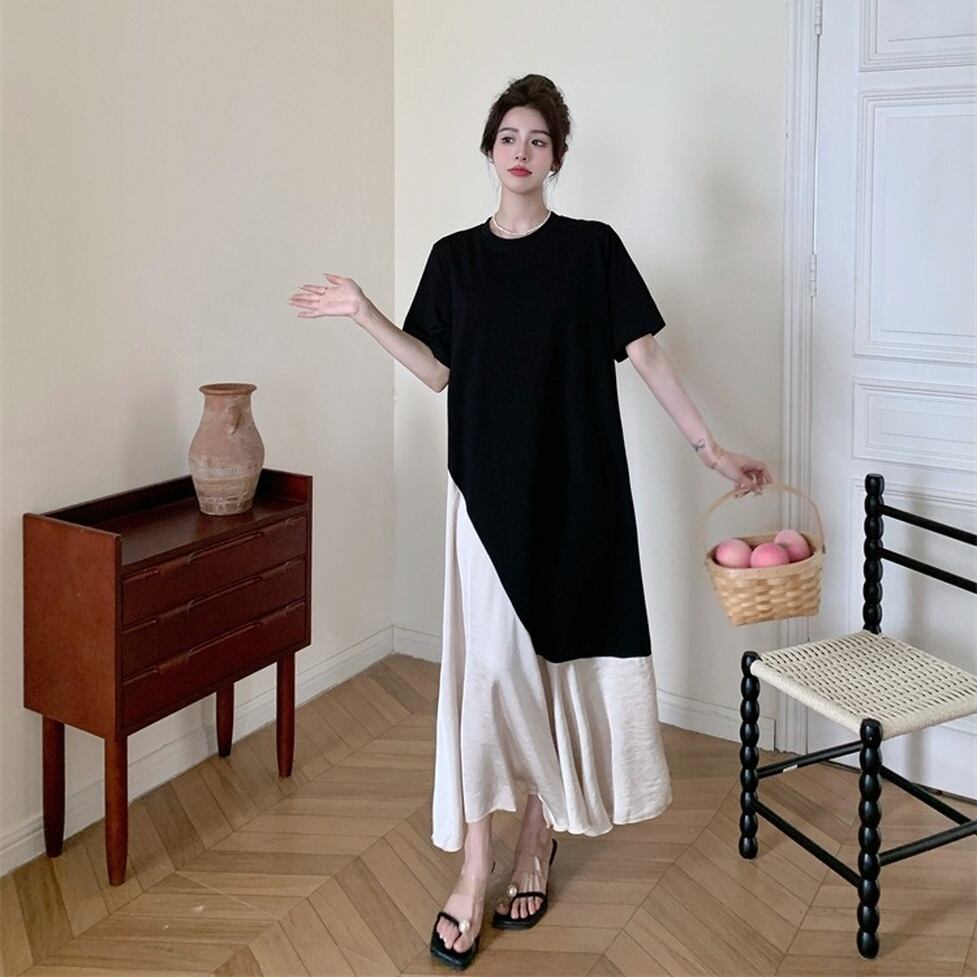 ワンピース ロングワンピース Tシャツワンピース シャツワンピース フレアワンピース アシンメトリーシャツワンピース ラウンドネック 半袖 ロング丈 フレア オーバーサイズ 無地 切り替え 配色ワンピース シャツドレス レディース かわいい 大人可愛い おしゃれ ガーリー エレガント キュート きれいめ 上品 お出かけ ショッピング 休日 通勤 通学 デート 旅行 体型カバー ゆったり スタイルUP デイリー 普段使い フェミニン シンプル カジュアル 鮮度アップ