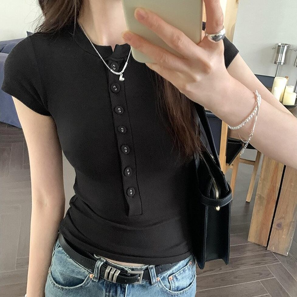 シャツ トップス カットソー リブシャツ 半袖シャツ Tシャツ フロントボタンリブカットソー リブ半袖Tシャツ ラウンドネック 半袖 無地 タイト スマート ボタン レディース かわいい 大人可愛い おしゃれ ガーリー エレガント キュート きれいめ 上品 お出かけ ショッピング 休日 通勤 通学 デート 女子会 イベント 旅行 体型カバー ゆったり スタイルUP デイリー 万能 普段使い フェミニン シンプル カジュアル マニッシュ 高見え 鮮度アップ