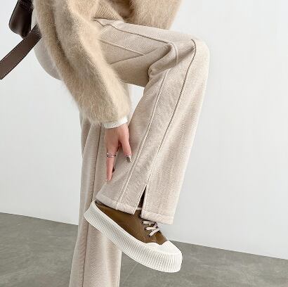 サイドスリットが抜け感をプラスする、スタイリッシュなワイドパンツ。
