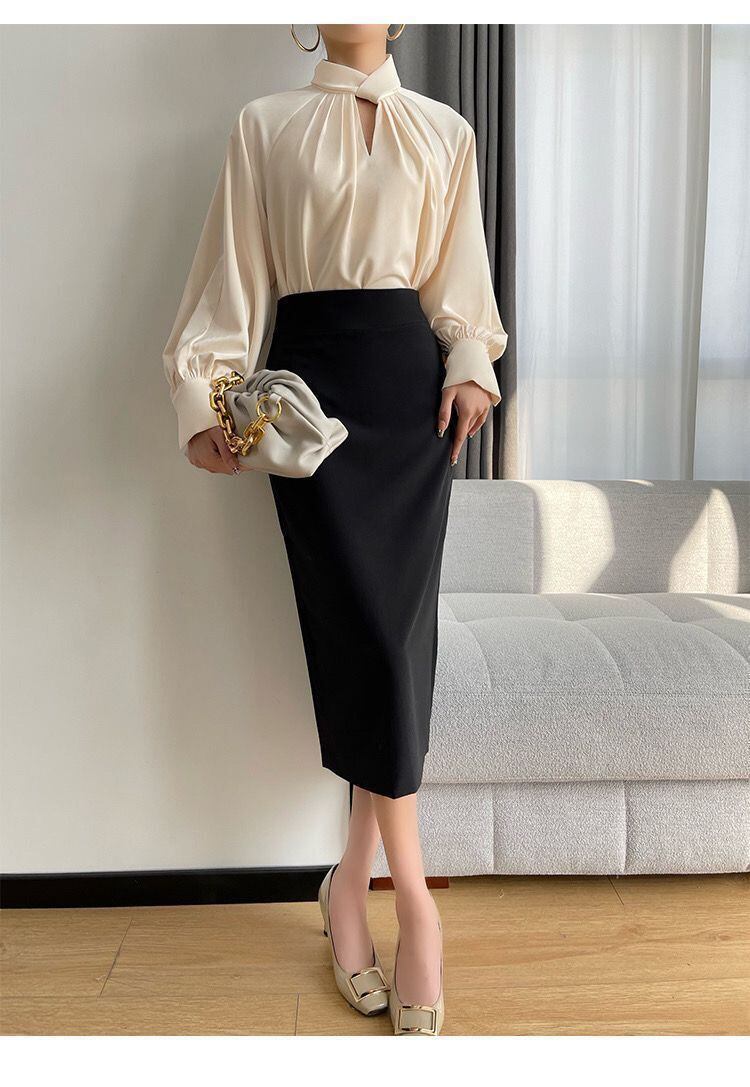 上品なハイネックにリボンタイをあしらった、大人可愛い印象の長袖ブラウス。ドロップショルダーのゆるやかなシルエットがこなれ感を演出し、オフィスにもお出かけにもぴったり。前開きボタン仕様で着脱もラクに行え、インでもアウトでもきれいにまとまります。無地のシンプルデザインが、ジャケットやスカートとの相性も抜群。ベージュの落ち着いた色味が、清楚でエレガントな大人の雰囲気を引き立てます。