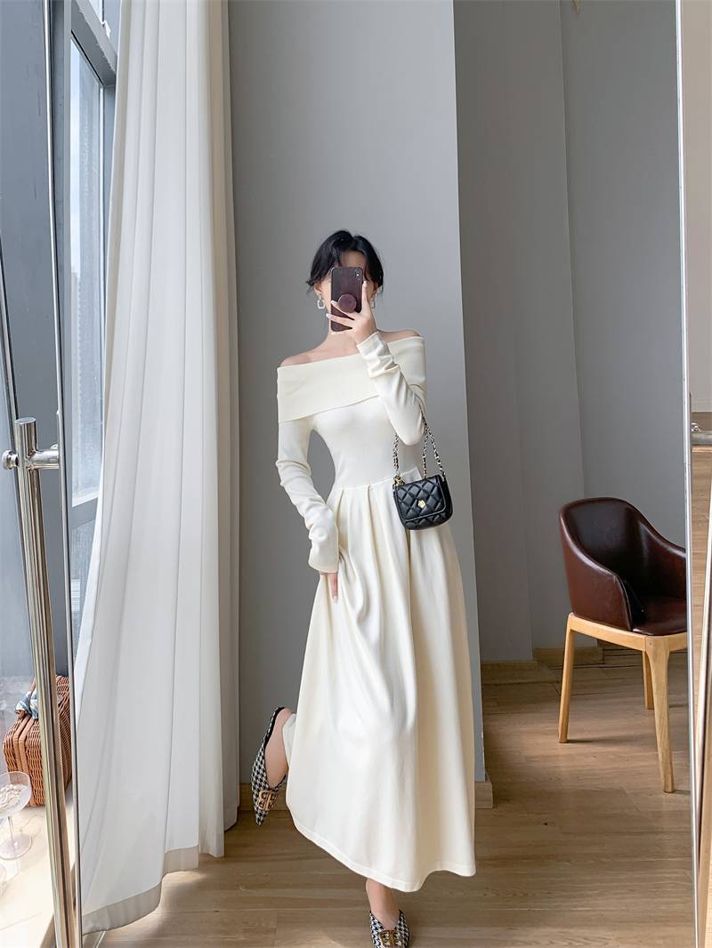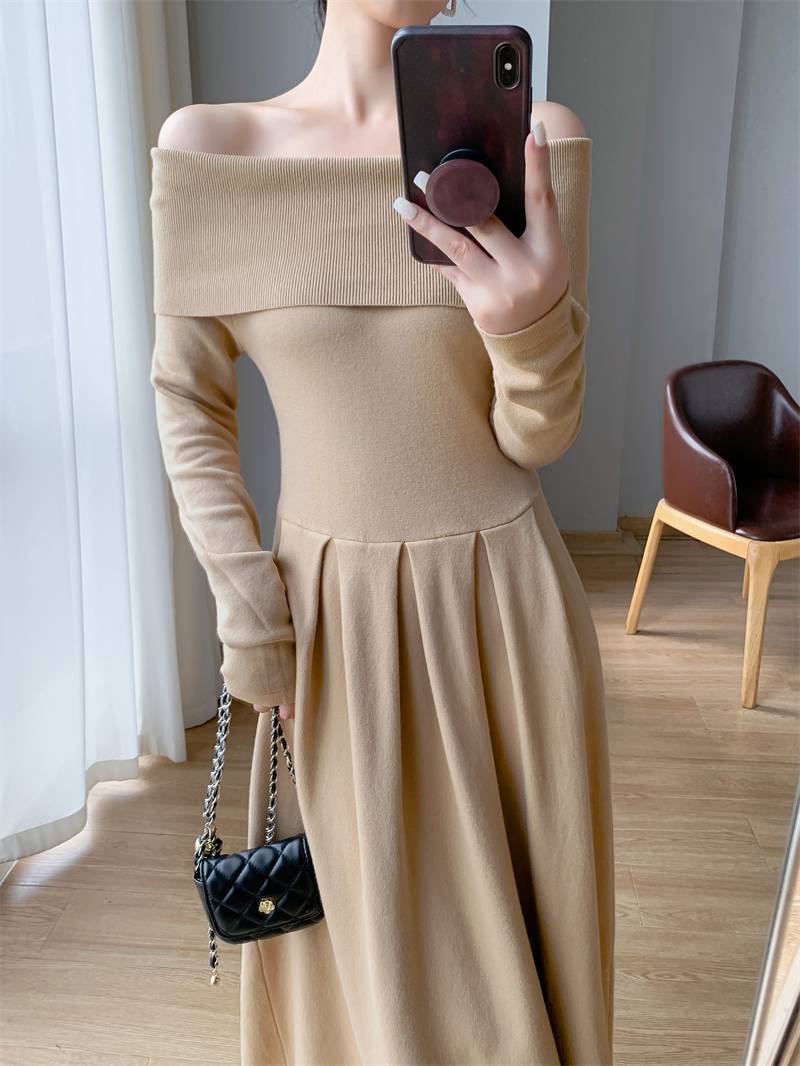 レディース ワンピース 膝下 ロング 長袖 オフショルダー フレア Aライン フェミニン かわいい 大人可愛い きれいめ シンプル 上品 おしゃれ こなれ感 ガーリー 存在感 キュート ベーシック ナチュラル 無地 春 秋 ママ OL 通勤 学生 学校 通学 デート お出かけ 旅行 レストラン 女子会 休日 ホテル ショッピング カフェ コーデ 普段使い 着回し モテ 清楚 トレンド S M L ブラック ブラウン ベージュ カーキ ベーシックカラー 大人カラー 春カラー 秋カラー カラバリ
