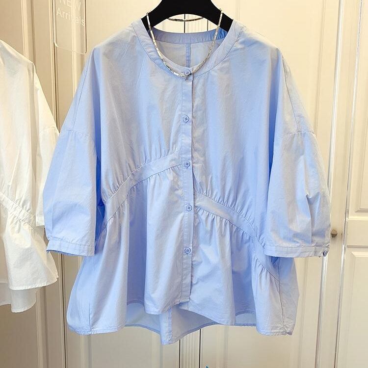 トップス シャツ 半袖 ラウンドネック 前開き ボタン ショート丈 アシンメトリー 可愛い かわいい 大人可愛い きれいめ シンプル 上品 おしゃれ レトロ かっこいい カジュアル こなれ感 ラフ 個性的 主役級 存在感 抜け感 春 夏 ベーシック ナチュラル クール 無地 女性用 レディース ママ OL 通勤 オフィス 学生 通学 デート お出かけ お泊まり 女子会 旅行 アウトドア カフェ ショッピング コンパ 普段使い デイリー イベント 着回し S M L XL 2XL 3XL トレンド モテ