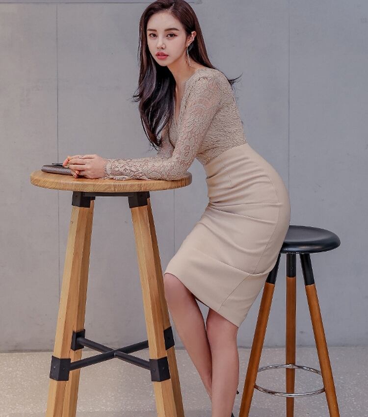 ワンピース ミディアム丈ワンピース 長袖 Vネック 切り替えデザイン レース 透け感 タイト バックスリット 可愛い かわいい 大人可愛い きれいめ シンプル 上品 おしゃれ レトロ かっこいい カジュアル こなれ感 個性的 主役級 存在感 抜け感 ナチュラル ベーシック エレガント 無地 女性用 レディース ママ デート お出かけ お泊まり 女子会 旅行 休日 カフェ ショッピング コンパ ディナー パーティー 二次会 普段使い デイリー イベント 着回し 重ね着 脚長 S M L XL トレンド
