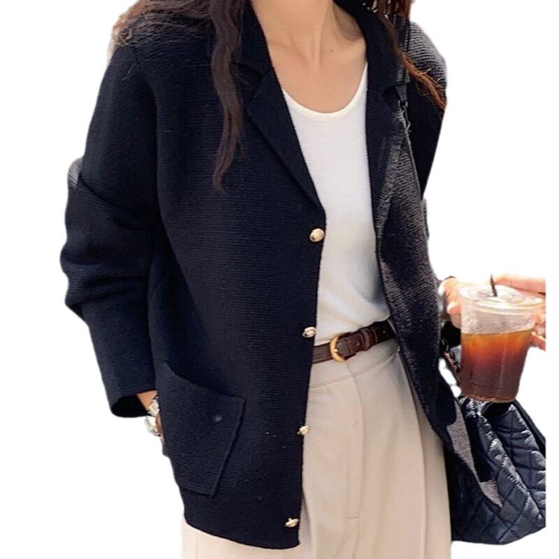 レディース ジャケット ニットは、シンプルでありながらおしゃれなアイテムです!秋冬の季節にぴったりなレギュラー丈と長袖のデザインが特徴で、ラペルとストレートのスタイルが洗練された印象を与えます。シングルブレストの前開き仕様は、軽い羽織りとしても、しっかりとしたアウターとしてもお使いいただける優れた一着です。