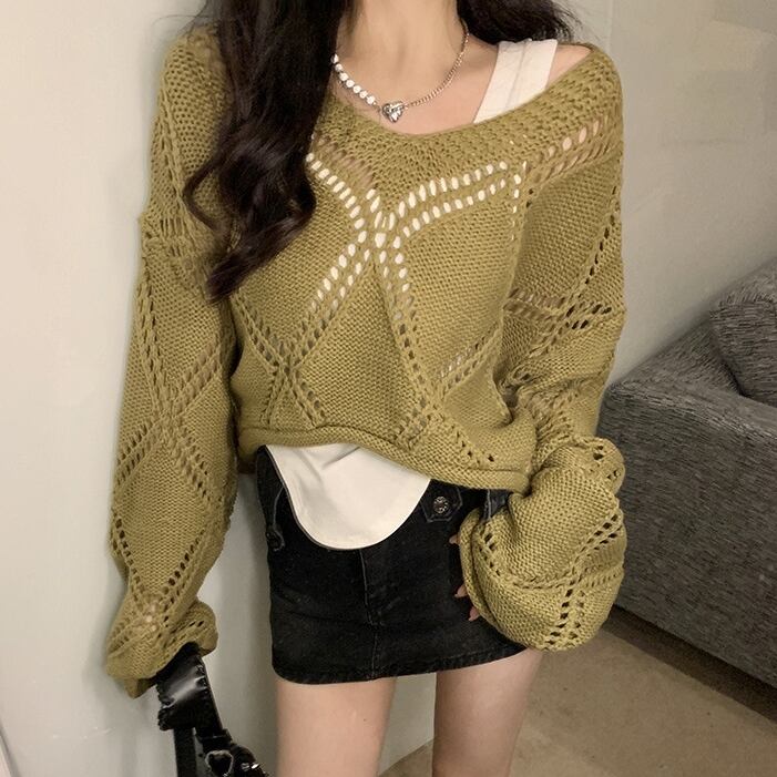 トップス セーター ニットセーター 長袖 Vネック プルオーバー ショート丈 透かし編み 可愛い かわいい 大人可愛い きれいめ シンプル 上品 おしゃれ レトロ かっこいい カジュアル こなれ感 個性的 主役級 存在感 抜け感 春 夏 ベーシック ナチュラル メンズライク 無地 女性用 レディース ママ OL 通勤 オフィス 学生 通学 デート お出かけ お泊まり 女子会 旅行 アウトドア カフェ ショッピング コンパ 普段使い デイリー イベント 着回し 重ね着 ワンサイズ トレンド モテ ゆったり