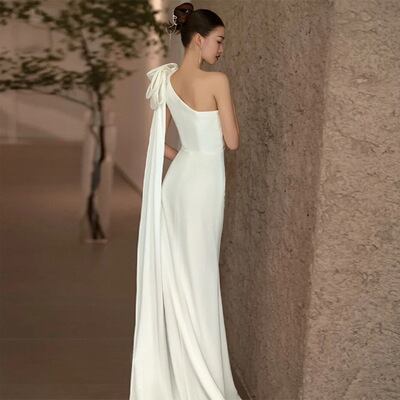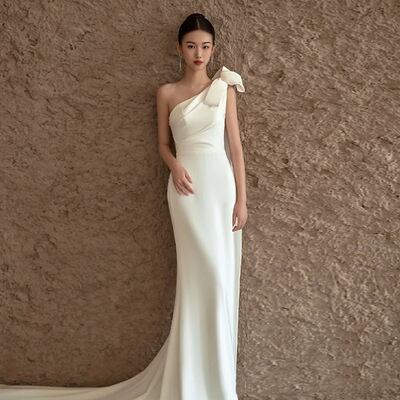 ドレス 衣装 ウエディングドレス ロングドレス 披露宴ドレス チャペル ワンショルダー 肩リボン 背中開き バックシャン フィッシュテール ハイウエスト ロング丈 ステージドレス 発表会 かわいい 大人可愛い きれいめ シンプル 上品 おしゃれ かっこいい こなれ感 個性的 主役級 存在感 抜け感 オールシーズン ロングシーズン シーズンレス エレガント 華やか ゴージャス 無地 レディース 女性用 結婚式 披露宴 パーティー 二次会 ホテル XS S M L XL 2XL 3XL トレンド 高級感
