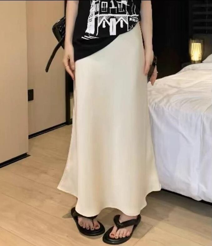 ボトムス スカート ロングスカート サテンスカート セミフレア ハイウエスト ロング丈 かわいい 可愛い 大人可愛い きれいめ シンプル 上品 レトロ おしゃれ かっこいい カジュアル こなれ感 個性的 主役級 存在感 抜け感 オールシーズン ベーシック ナチュラル クール 無地 女性用 レディース ママ OL 通勤 オフィス 学生 通学 デート お出かけ お泊まり 女子会 旅行 休日 会議 カフェ ショッピング イベント コンパ 普段使い デイリー 着回し 脚長 XS S M L トレンド モテ