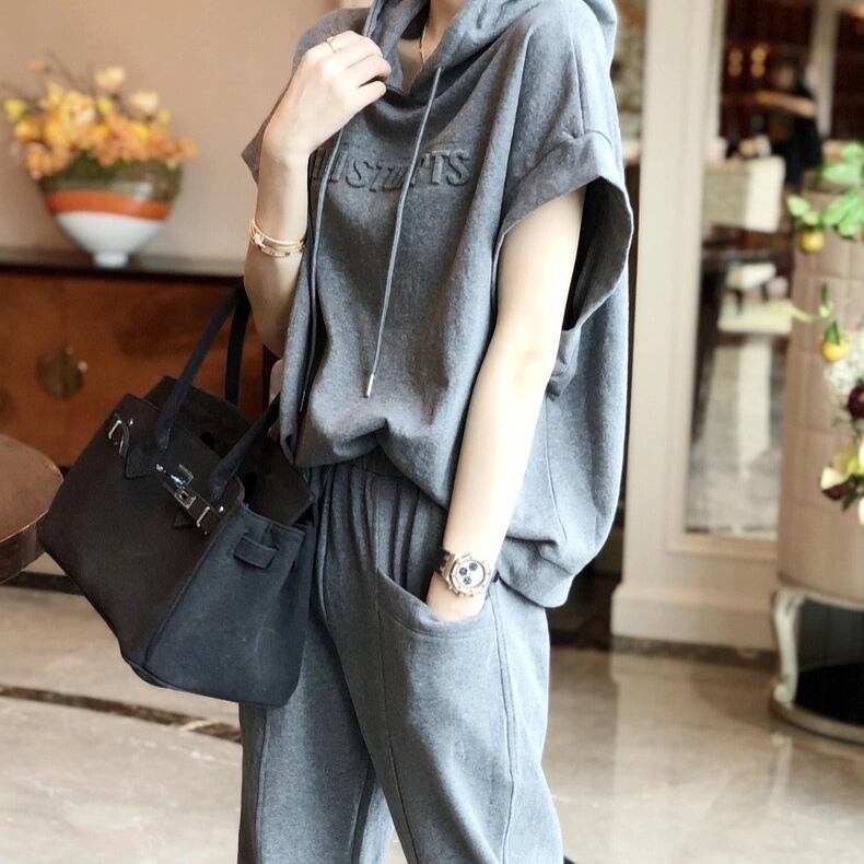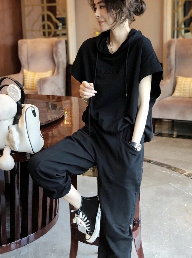 こちらの セットアップは、可愛いフーディーとロングパンツの組み合わせです。