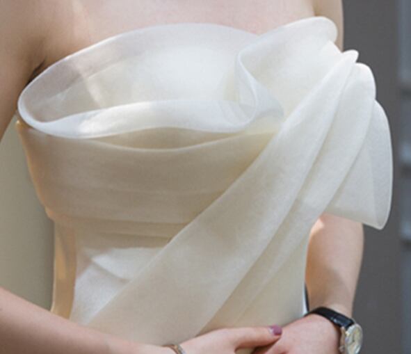 こちらは、エレガントなマーメイドシルエットが魅力のドレスです。袖なしのオフショルデザインは肩を美しく見せ、プリーツ加工が動くたびに上品な揺れを演出。高めのハイウエストがスタイルアップを叶え、様々なシーンでの存在感を引き立てます。シンプルながらもおしゃれでレトロな印象を与えるため、結婚式の二次会や披露宴、演奏会、発表会、さらにはホテルでのパーティーにもぴったり。セクシーさとエレガンスの両方を兼ね備えた、シーズンレスでお使いいただける一着です。