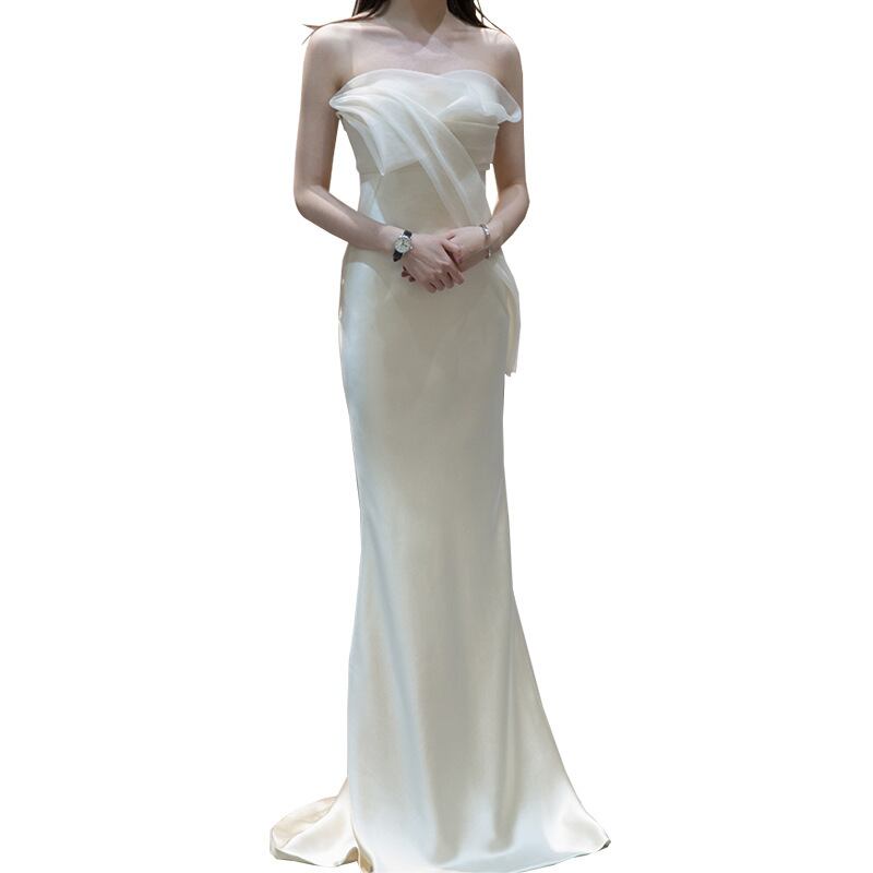 ドレス ウェディング パーティー 二次会 披露宴 演奏会 発表会 ステージ 舞台 ロング 袖なし オフショル マーメイド タイト イブニング プリーツ ハイウエスト シアー ポリエステル繊維 きれいめ シンプル おしゃれ レトロ 存在感 エレガント セクシー 無地 パーティー イベント ホテル シーズンレス XS S M L XL 2XL ホワイト レッド