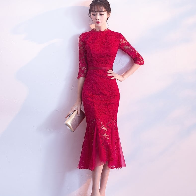 ドレス 衣装 カクテルドレス ミディアム丈ドレス 5分袖 ハイネック ハイウエスト 透け感 マーメードスカート シースルー 刺繡 ステージドレス 発表会 かわいい 大人可愛い きれいめ シンプル 上品 おしゃれ かっこいい レトロ こなれ感 個性的 主役級 存在感 抜け感 オールシーズン ロングシーズン シーズンレス エレガント 華やか ゴージャス 無地 レディース 女性用 結婚式 披露宴 パーティー 二次会 ホテル イベント 脚長 XS S M L XL 2XL 3XL トレンド モテ 高見え 高級感