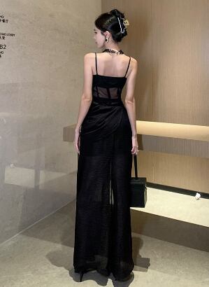 レディース ドレス ロングドレス 袖なし キャミソール Vネック 襟なし タイト スリム スリット 透け感 シースルー きれいめ シンプル 上品 おしゃれ こなれ感 ラフ 個性的 クール モード系 エレガント モダン 主役級 存在感 都会的 ベーシック ナチュラル シック スタイリッシュ クール 無地 春 夏 お出かけ パーティー イベント モノトーン 美脚 脚長 モテ トレンド 流行 インスタ映え 定番 スタイルアップ セクシー S M L 黒 ブラック ベーシックカラー 大人カラー