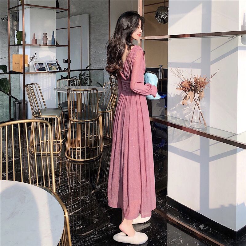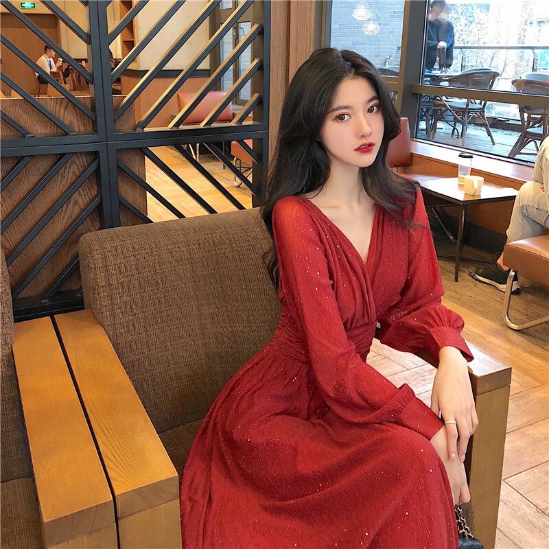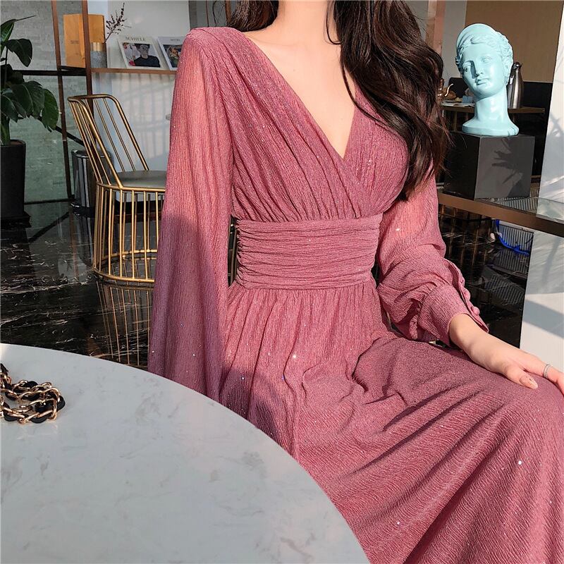 レディース ワンピース ドレス ロング 長袖 Vネック Aライン フェミニン ギャザー ウエストマーク スパンコール かわいい 大人可愛い きれいめ シンプル 上品 おしゃれ こなれ感 ガーリー キュート ナチュラル 無地 春 秋 ママ デート お出かけ パーティー イベント リゾート 旅行 レストラン 女子会 休日 ホテル ショッピング カフェ 普段使い 着回し S M L XL 2XL 大きいサイズ ブラック ピンク レッド ベーシックカラー 春カラー 秋カラー カラバリ