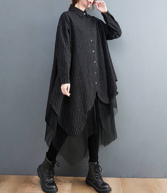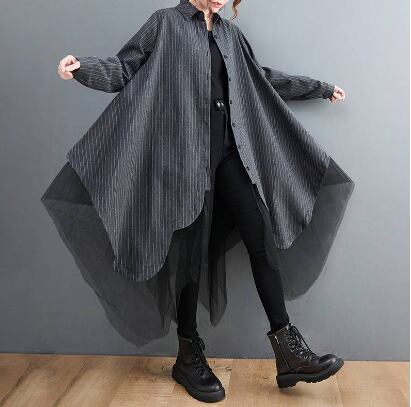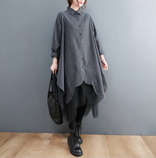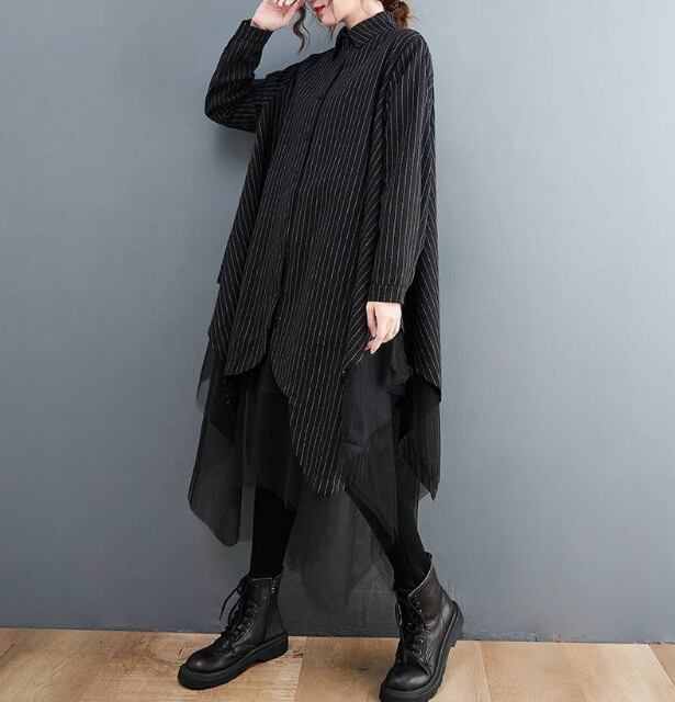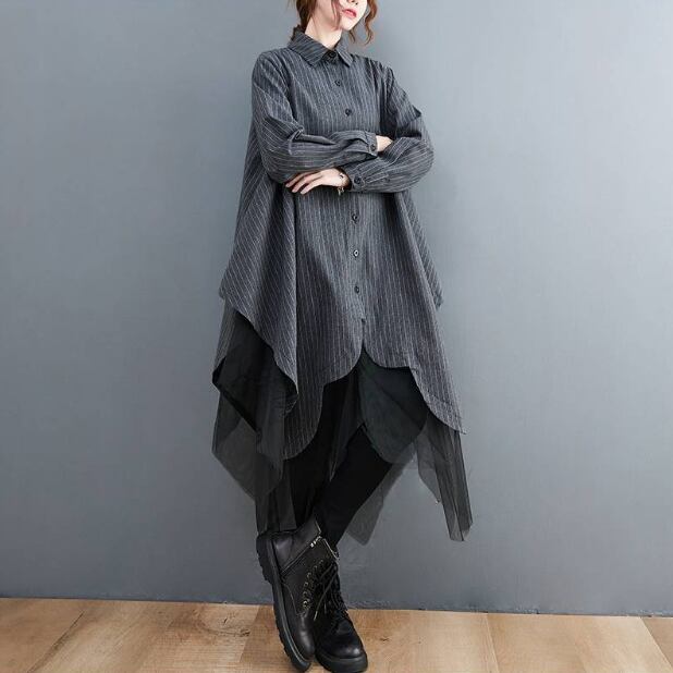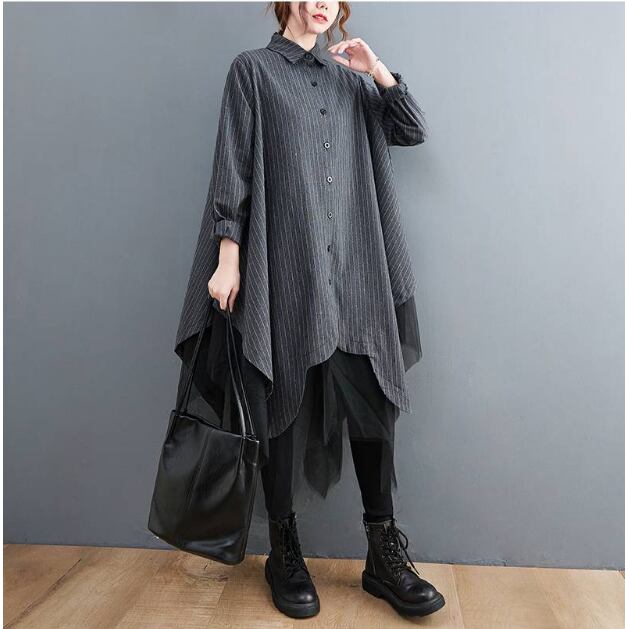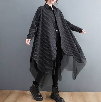 レディース トップス シャツ ブラウス ロングシャツ 長袖 襟付き ワイド 前開き シンプル カジュアル おしゃれ かっこいい こなれ感 ラフ 個性的 クール モード系 モダン 主役級 存在感 都会的 ワイルド ストライプ 秋 デート お出かけ ショッピング カフェ モノトーン コーデ 楽ちん 体型カバー 普段使い 着回し モテ トレンド 流行 インスタ映え 定番 スタイルアップ ゆったり ゆる フリーサイズ ワンサイズ ブラック グレー ベーシックカラー 大人カラー カラバリ