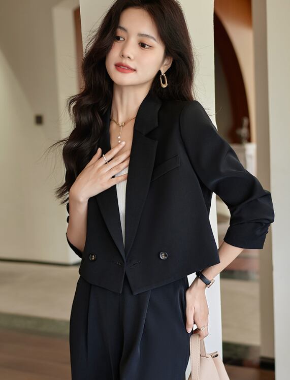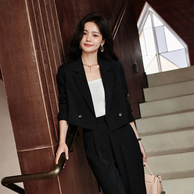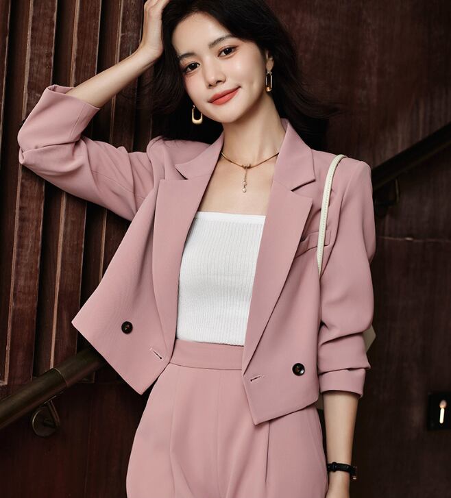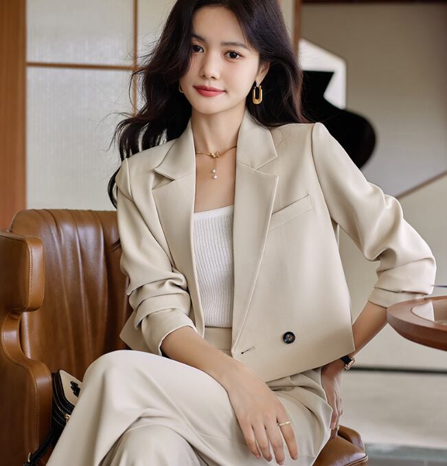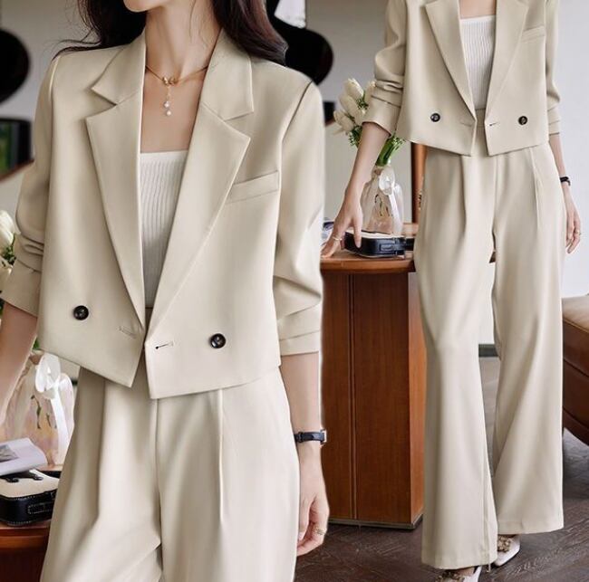 洗練されたシルエットが魅力のジャケット&パンツの2点セット。